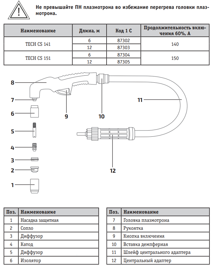 | Плазмотрон в комплекте | TECH CS 141, 6 м |